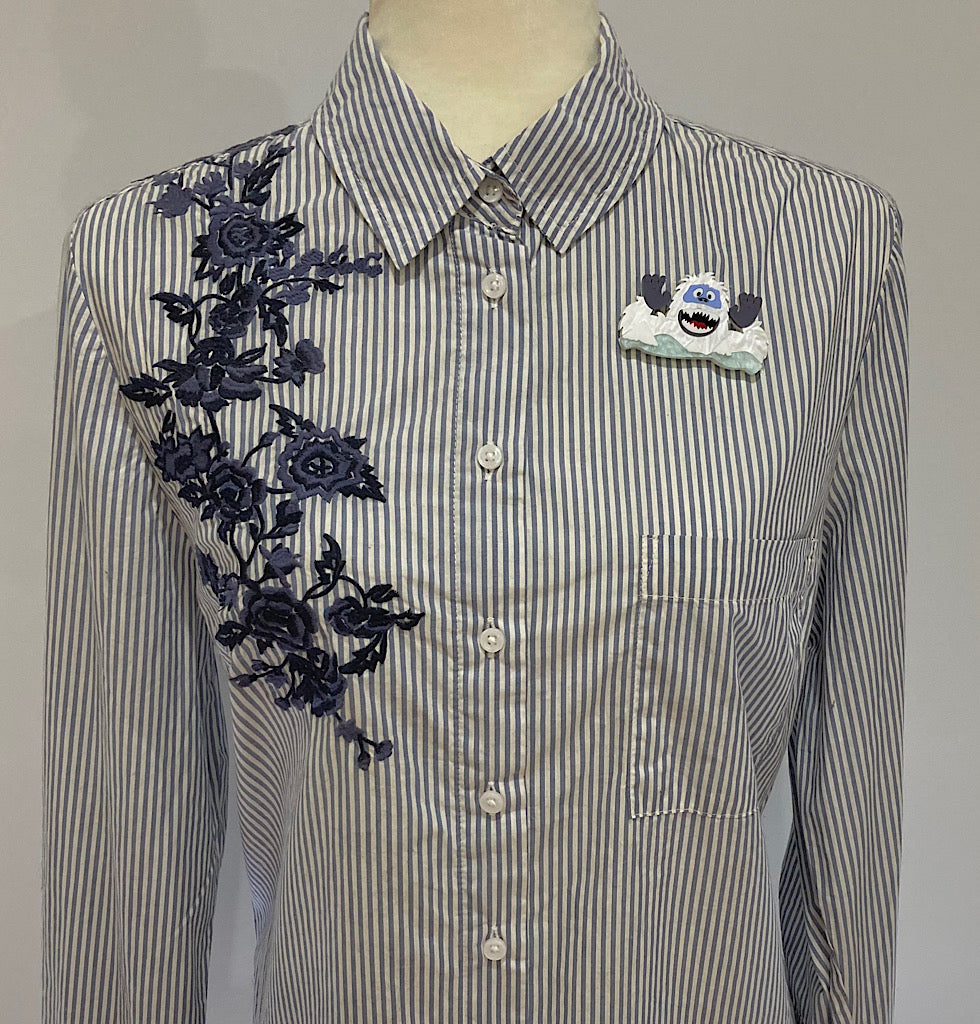 This brooch measures approximately 6.5 cm W x 4 cm H.