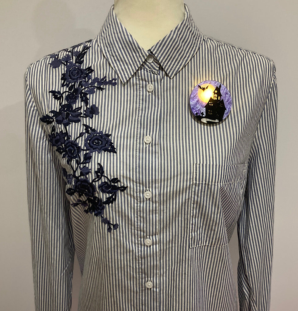 This Brooch contains Tantalising Treasures ‘Beamotronics’ (powered by a rechargeable cell battery). To minimise impact on the environment we have sourced rechargeable button cell batteries.