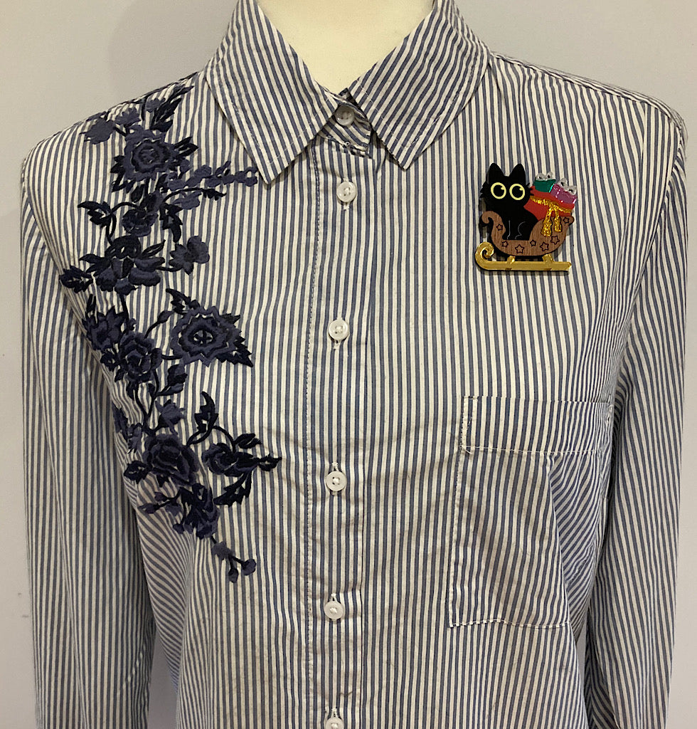 This brooch measures approximately 5 cm W x 5.5 cm H.
