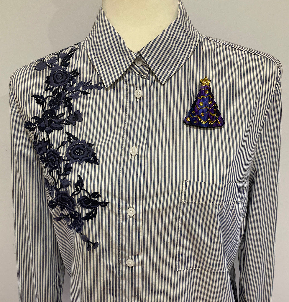 Purple, Blue & Gold Christmas Tree Brooch